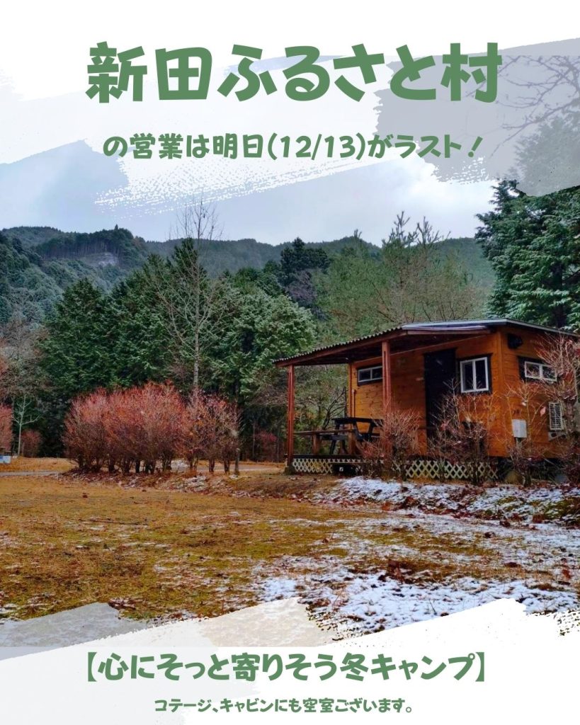 今日の新田ふるさと村は芝生にほんのり雪がかかる、やさしい冬の景色。
